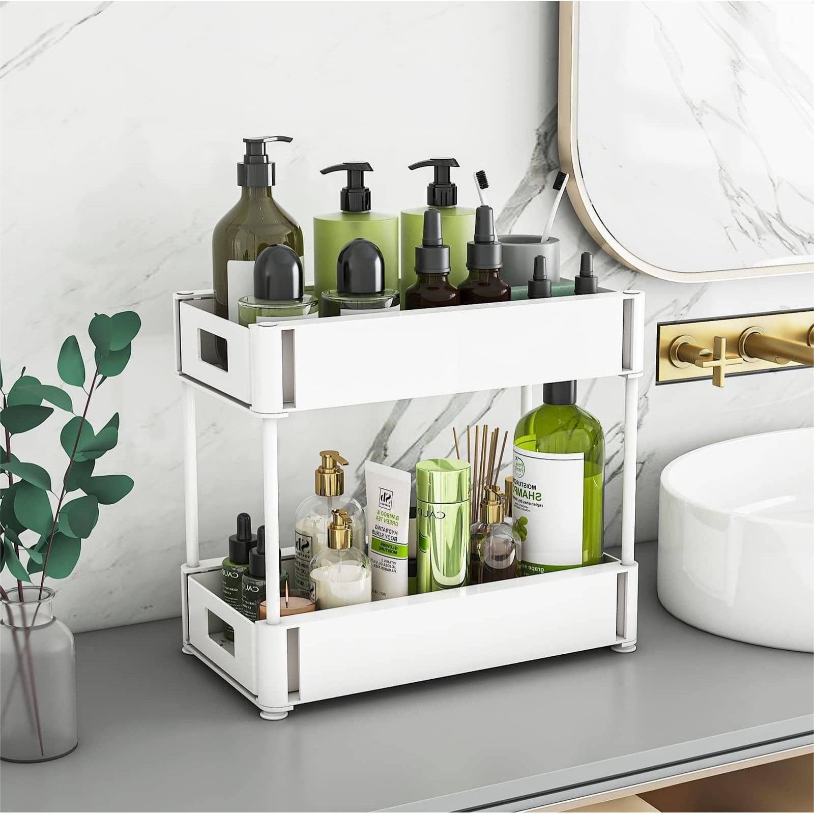 2 sets sink storage units and bathroom sink storage units, 2-layer drawer cabinet storage unit for kitchen bathroom sink storage, white