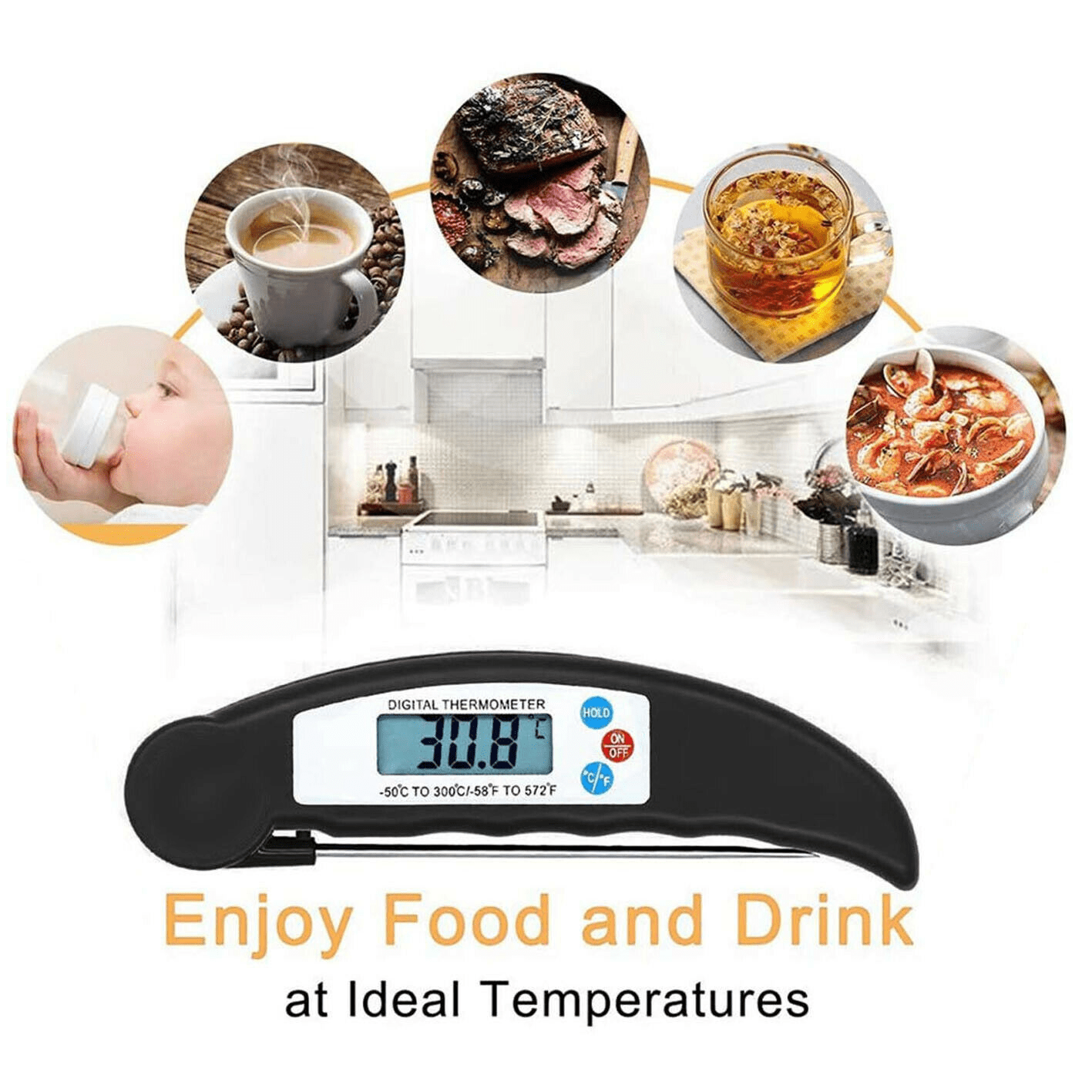 KT Deals Digital Meat Thermometer with large LCD display and long foldable stainless-steel probe is a right-hand assistant for your good cooking especially for grilling and barbecue. Can be read out instantly and accurately after 3-4 seconds response when you insert the thermometer into the food. Press the Hold button to keep the temperature on display if needed. The button battery is included and it will shut down automatically after 10 minute inactivity to preserve battery life.